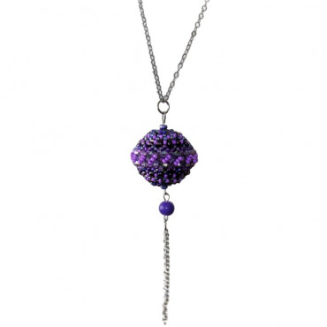 Handmade colorful ball pendant in shades of purple and silver chain necklace