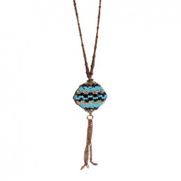 ❤ The necklace made of small venice beads in blue, gold and brown connected to a long brown metal chain