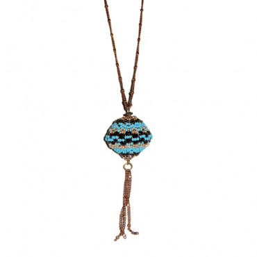 Azure round pendant necklace, Handmade necklace, Bead work necklace, Woman necklace, Unique necklace, one of a kind!!!