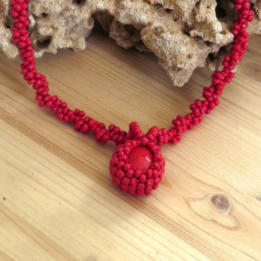 ❤ The necklace made of special method rhyming using red color beads combined with red Coral Stone