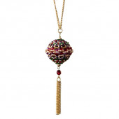 Round Pendant burgundy and green beads necklace, one of a kind!!!