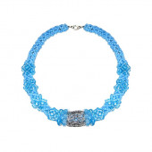 handmade light blue beads and crystals and silver crocheted ring necklace