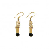 Matte gold asymmetrical beads, black crystal & gold tube beads earrings