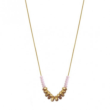 ❤ Necklace designed with ten asymmetrical matte metal beads and light pink crystals combined with a gold-colored stainless steel chain